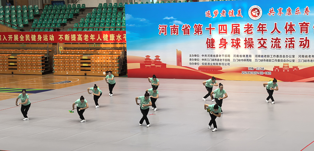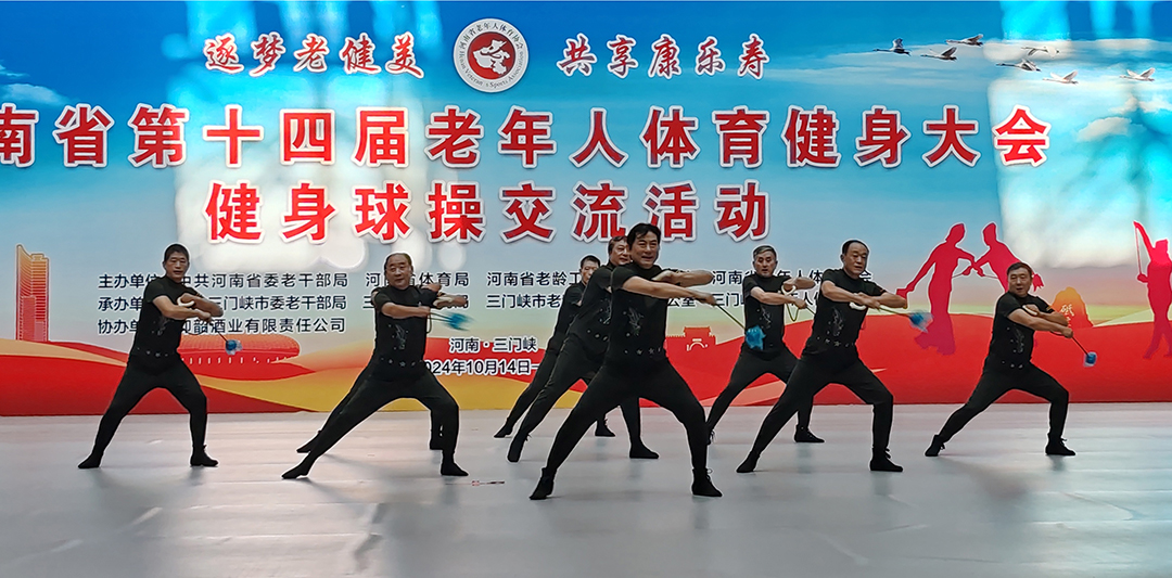 河南省第十四届老年人体育健身大会健身球操交流活动10月15日至10月17日在三门峡市举行。驻马店市代表队获5项目优胜奖和体育道德风尚奖。展现出驻马店市健身球操项目的实力和风采。