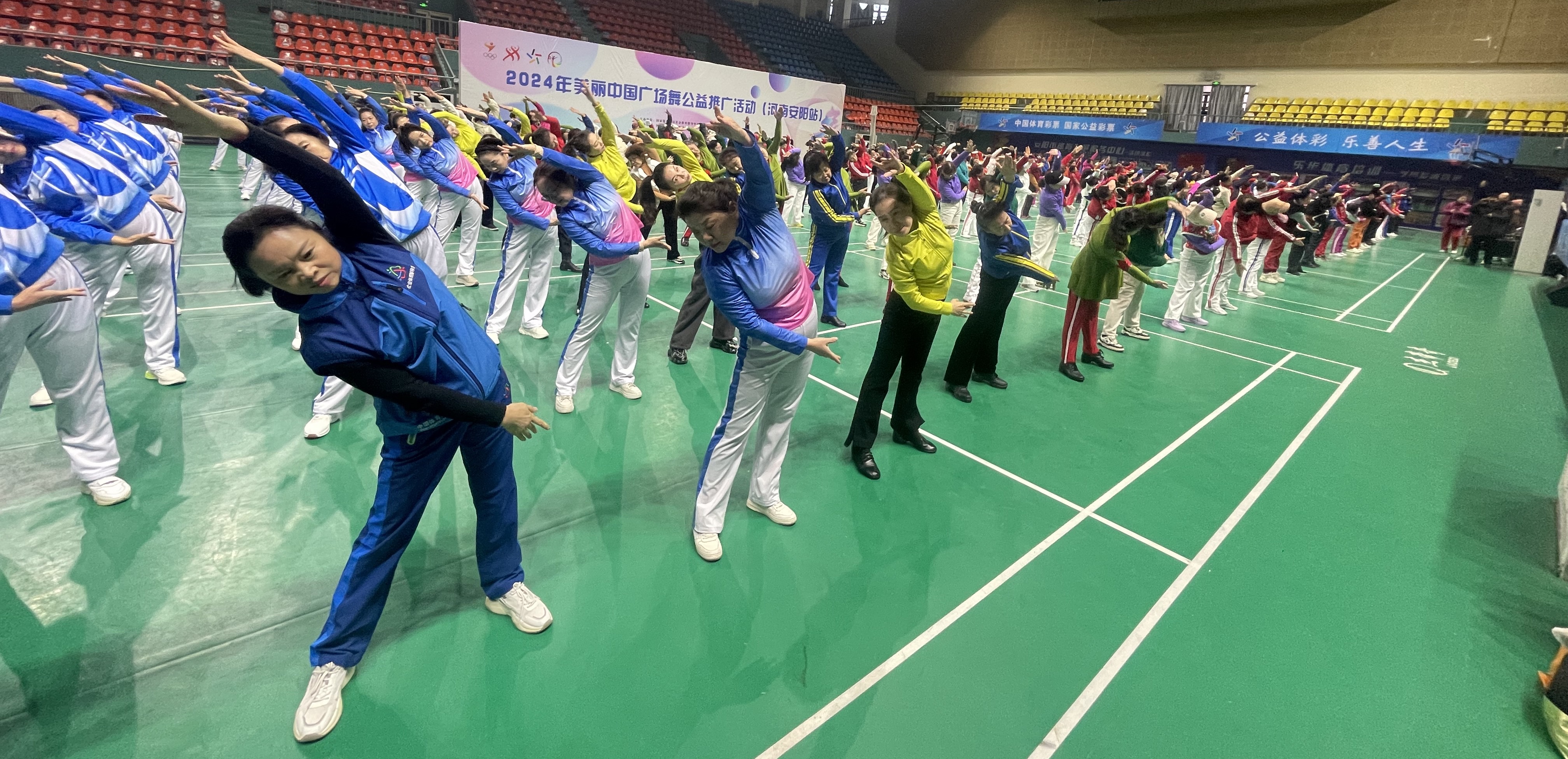 为积极响应党的二十大报告提出“广泛开展全民健身活动,促进群众体育和竞技体育全面发展,加快建设体育强国”,贯彻落实《全民健身计划(2021—2025年)》,进一步推动广场舞项目发展。12月12日上午,2024年美丽中国广场舞公益推广活动(河南安阳站)在安阳市体育馆隆重开幕。本次活动由国家体育总局社会体育指导中心、全国广场舞健身活动推广委员会主办,河南省健美健美操运动协会、安阳市文化广电体育旅游局承办,安阳市体育总会、安阳市老年人体育协会、安阳市体育发展服务中心、市瑜伽协会协办,河南彰韵文体旅有限责任公司执行。来自全市各县(市、区)250余名广场舞骨干及爱好者参与。